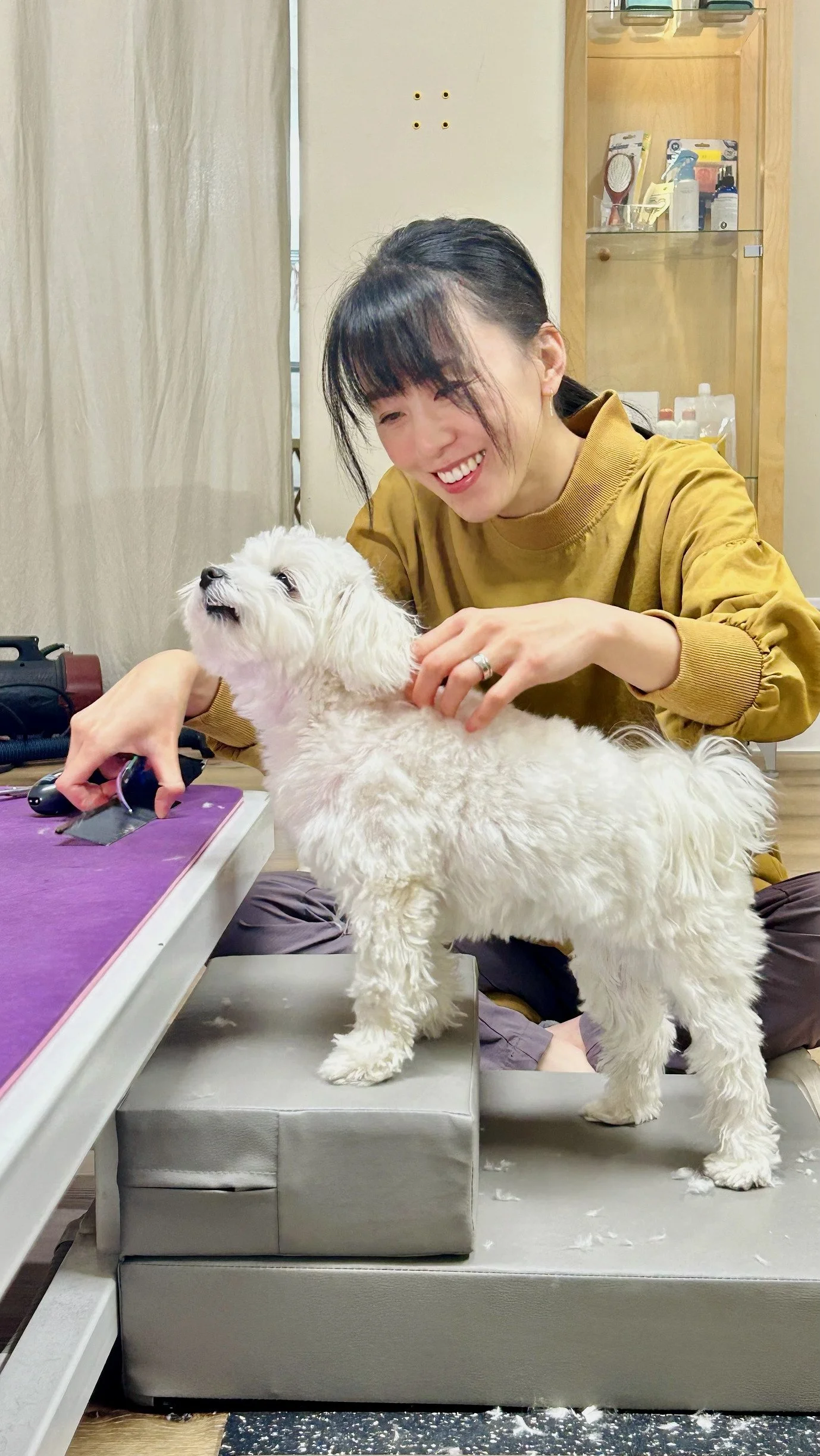 What truly matters to me is their emotional well-being. When a dog’s mind is happy and healthy, the joy they show—like wagging their tail—is one of the most rewarding moments. My mission and passion are to groom dogs in a way that prioritizes their physical comfort, without subjecting them to unnecessary stress. I believe every dog deserves this.